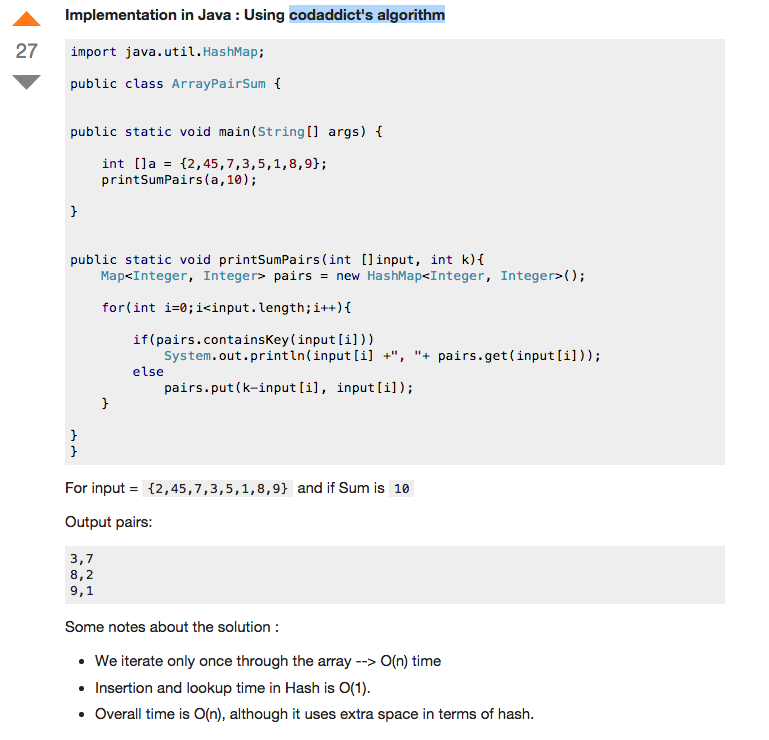您需要知道的是,这段Java代码并没有实现Cod瘾的逻辑。它看起来有点相似,但它只是在做一些不同的事情:Cod瘾将输入值存储为键,索引存储为值,而(sum-value)实现将value存储为键,value存储为值。