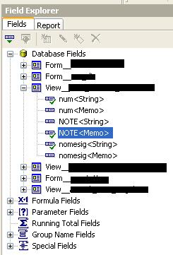 在水晶报告10中,野外探索者下的男人们,每个“串”源字段都有亲戚“备注”字段。这两种类型的字段有什么区别?因为在某些报告中,"string“字段被截断,我必须使用相对”备注“类型来查看该字段的整个内容。但我不知道为什么。谁能帮我理解这两种类型的领域的不同之处,以及当我不得不选择另一种的时候。