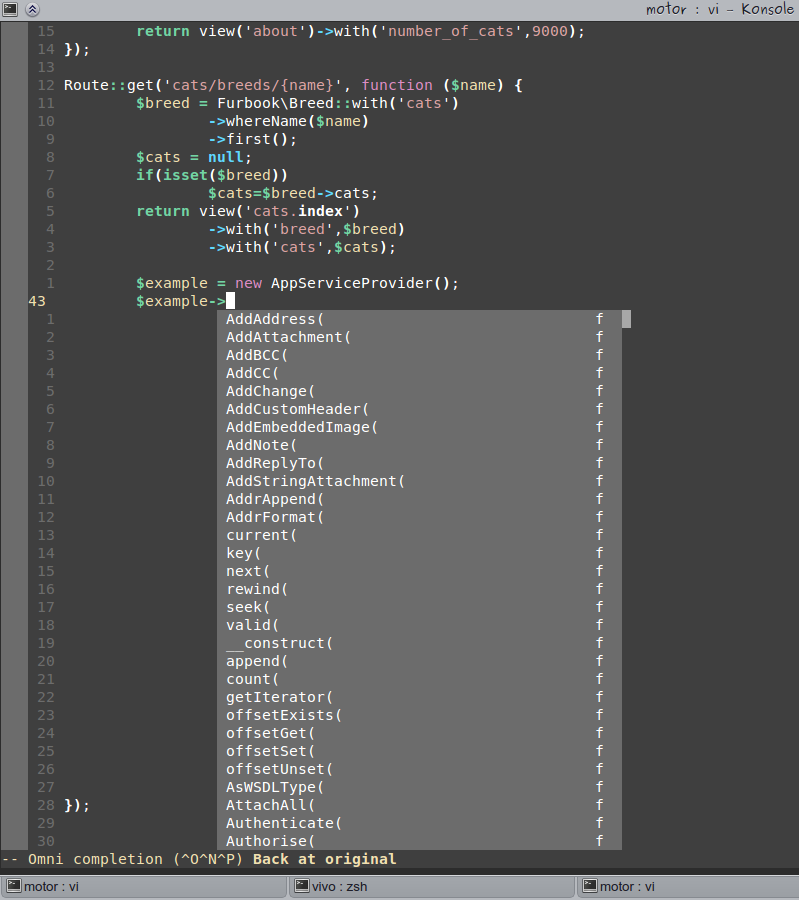 我已经花了两天的时间尝试用VIM为框架创建一个良好的工作环境,在这种情况下,就是laravel。