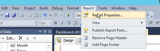 如果在Report菜单中使用SSDT,请转到Report Properties