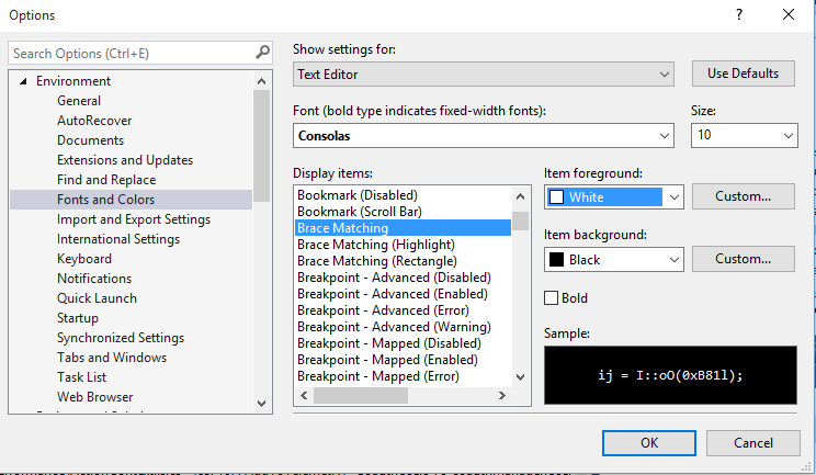 刚刚安装了visual studio 2015,我对这个可怕的括号突出显示系统感到震惊。