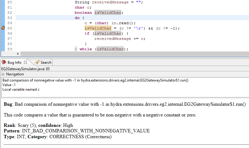 Bug: Bad comparison of nonnegative value with -1 in hydra.extensions.drivers.eg2.internal.EG2GatewaySimulator$1.run()