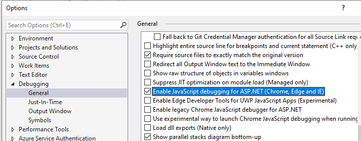 问题:-在调试模式下运行JS空白应用程序& VS2015中的本地机器w默认设置会向JavaScript控制台生成警告:“应用程序当前未附加到支持脚本诊断的脚本调试目标”。断点不起作用,添加console.log(“这里”)不会向控制台写入任何内容