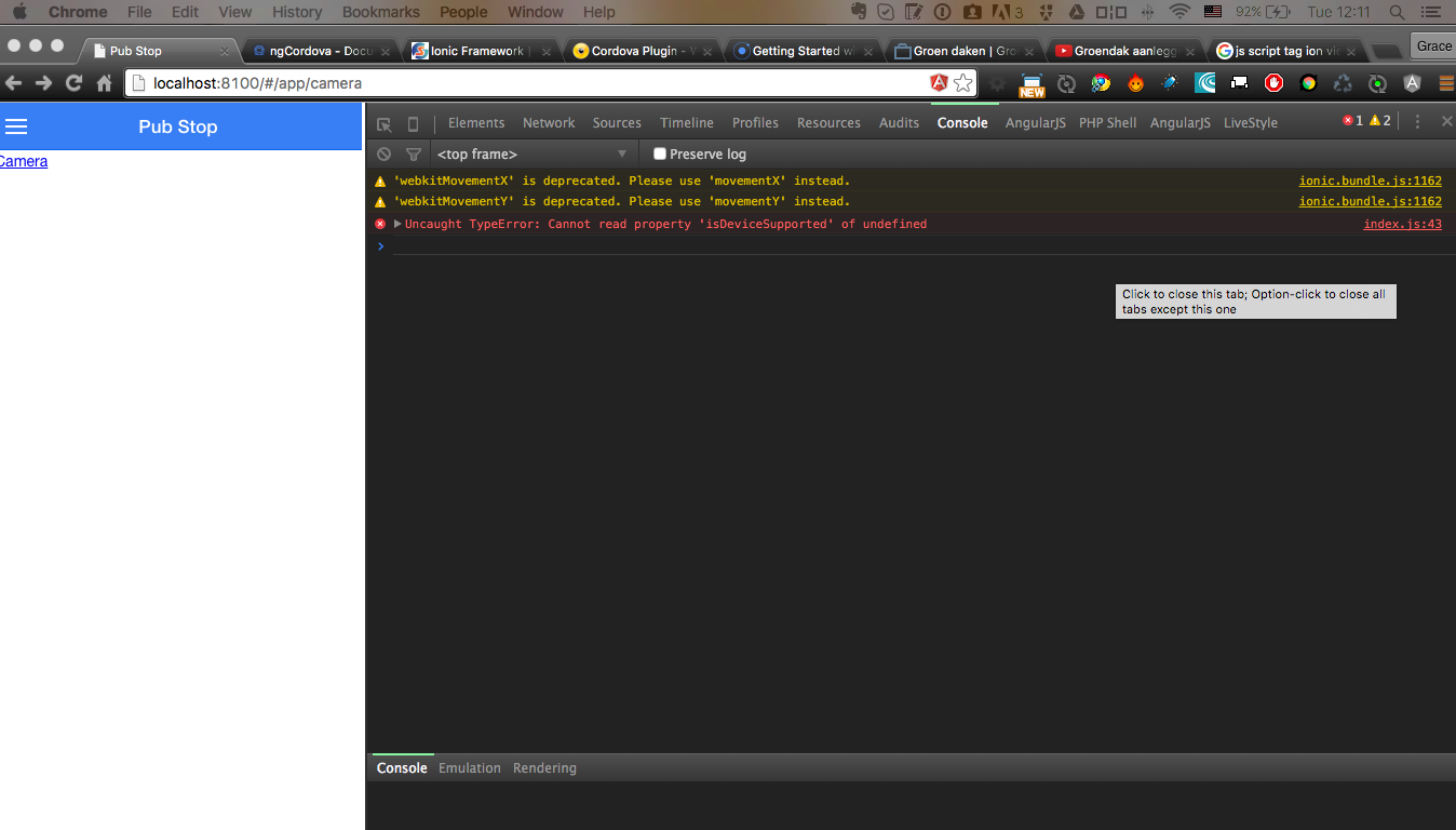 </ion-view>当我通过Ionic View在电话上运行它时,不会发生任何事情,所以我在浏览器中运行它,得到以下错误: