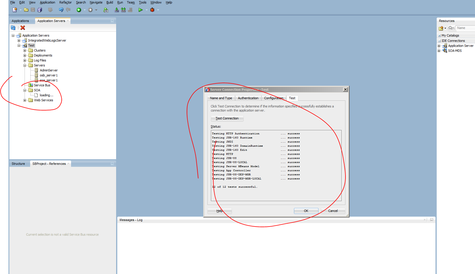 下面是更新:连接测试都已成功返回。但是当我试图使用这个SOA文件夹时,它只是继续加载.