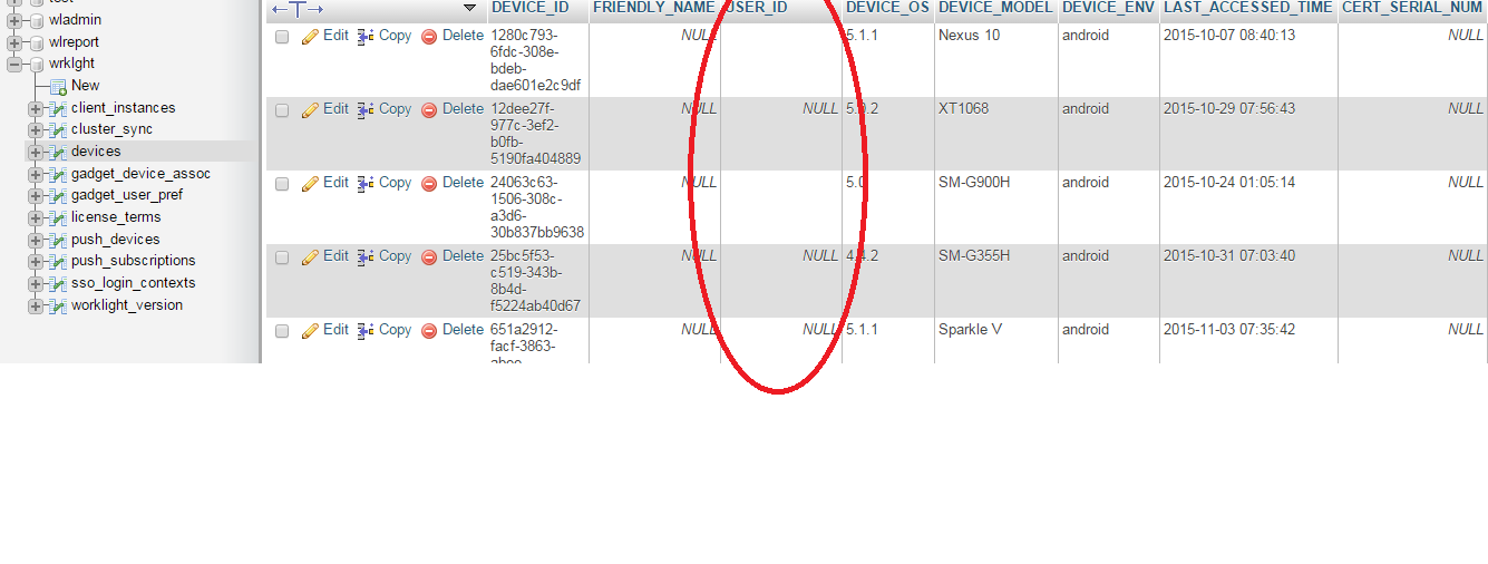 而登录进程用户标识没有存储在设备表中。在该设备表中,用户In 字段存储为NUL。因此,用户in 没有显示在设备选项卡中,移动第一控制台。