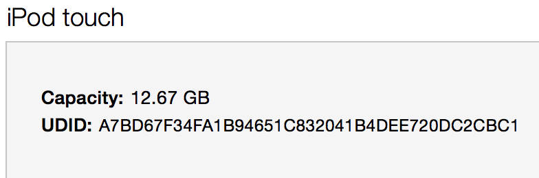 所以我找到了解决这个问题的方法。iTunes给出的设备的UDID为A7BD67F34FA1B94651C832041B4DEE720DC2CBC1。