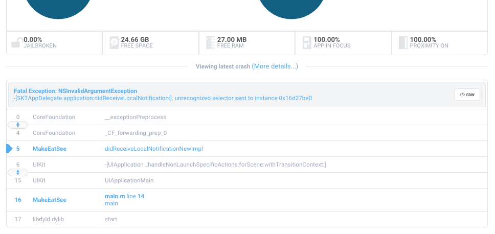 SKTAppDelegate。SKTAppDelegate。SKT前缀通常是SupportKit,Smooch的旧名称。这个,我在应用程序中是用的。但是没有,这是我在应用程序中使用的。SKTAppDelegate的地方就是一些苹果演示源didReceiveLocalNotificationNewImpl方法。为什么会发生这样的车祸?我能做些什么来解决这个问题?