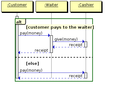 这不是真正的“或”,因为这意味着你可以同时支付服务员和出纳员( " or“是一个,另一个,或两者兼而有之)。所以你想要的是如果/否则。这是由组合碎片表示的。