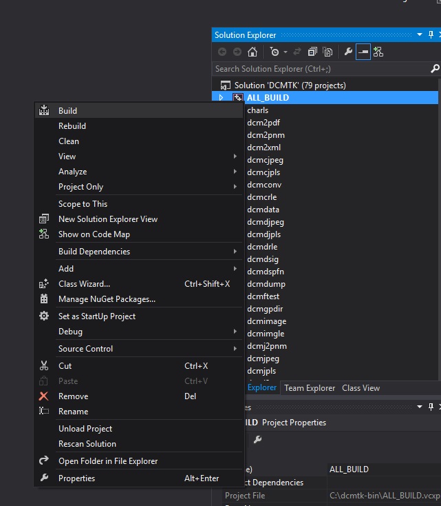 C:\dcmtk-bin\DCMTK.sln并构建了ALL_BUILD