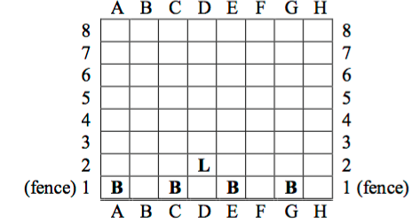 我用java编写了一个游戏。游戏很简单(参见下图)。有4只鸟和1只幼虫。这是一个2人的游戏(AI对人类)。