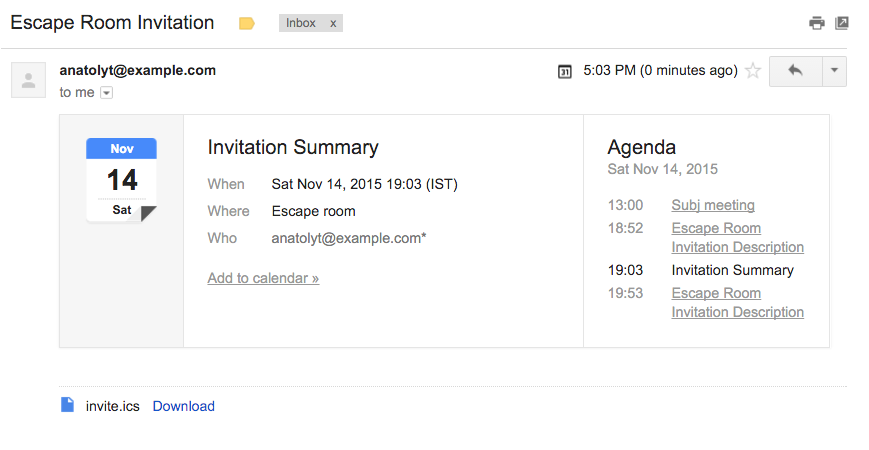 当我发出第一次和第二次邀请时,我在gmail上收到以下电子邮件: