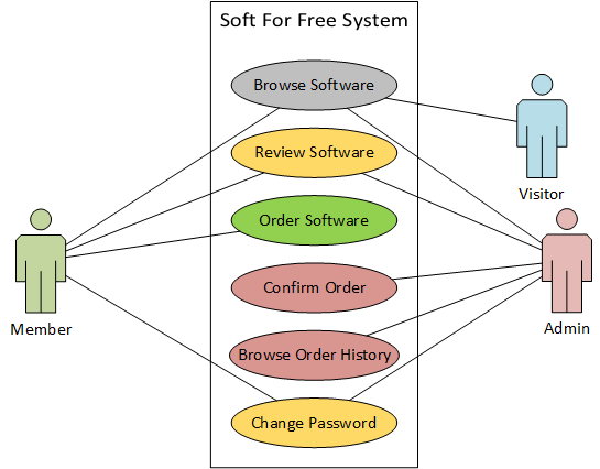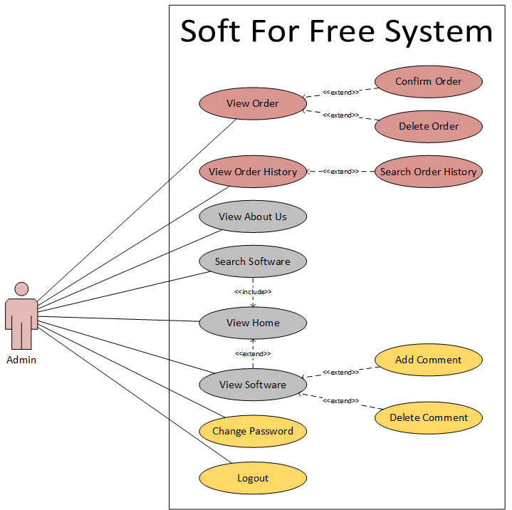 顺便提一句:Login不是业务用例。这是一种限制。另外,对于CRUD用例,我不会将它们分开,而是有一个Maintain <object> (这本身就是一些边缘用例,因为维护某些东西与业务无关)。您可以将维护操作分别约束到特定的参与者。