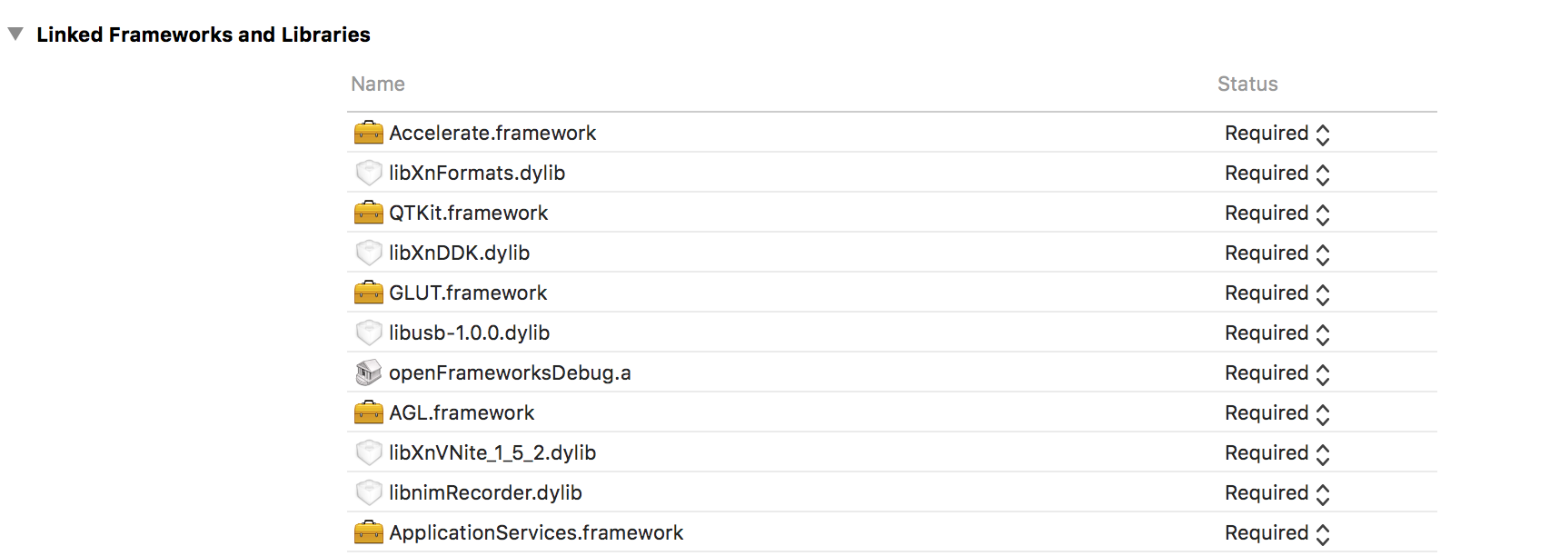 我在openFrameworks中使用一个名为openFrameworks的addon,它基本上是openFrameworks的OpenNI接口。它有一些我安装并链接到我的XCode项目的需求。不过,有一个链接错误,我无法修复。它在这里(我粘贴了一个图像,这样我就不会错过任何东西):