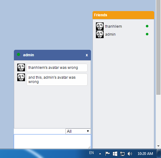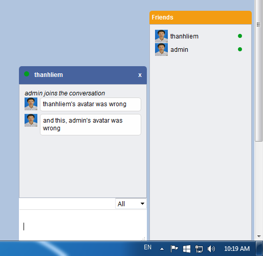 你可以看到我的聊天应用程序可以传递正确的信息,但它显示错误的化身。请帮帮我!