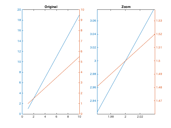 h = plotyy(1:10,1:2:20,1:10,1:0.5:5.5)