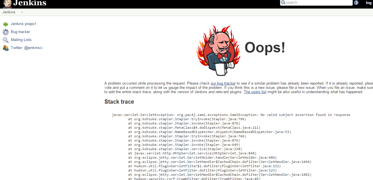 我已经在jenkins上发布了这个问题,但是不确定问题的确切原因是什么- https://github.com/connectifier/jenkins-saml-plugin/issues/9。任何帮助都是非常感谢的。