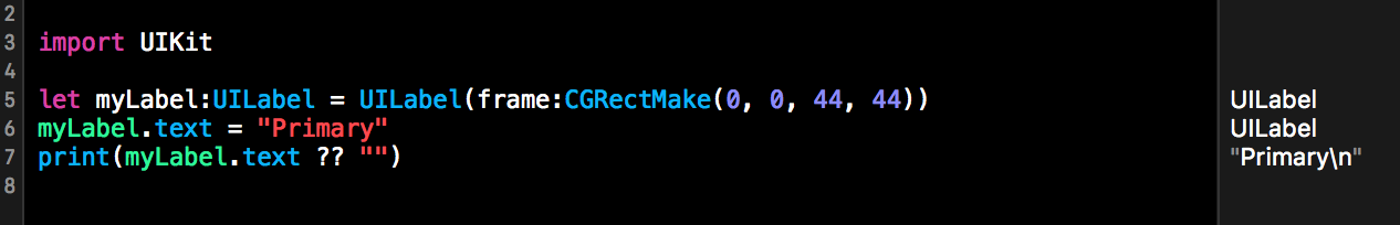 let myLabel:UILabel = UILabel(frame:CGRectMake(0, 0, 44, 44))