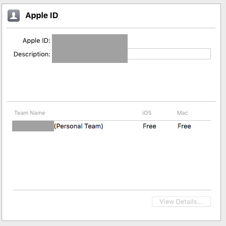 我的Xcode首选项>帐户>帐户如下所示