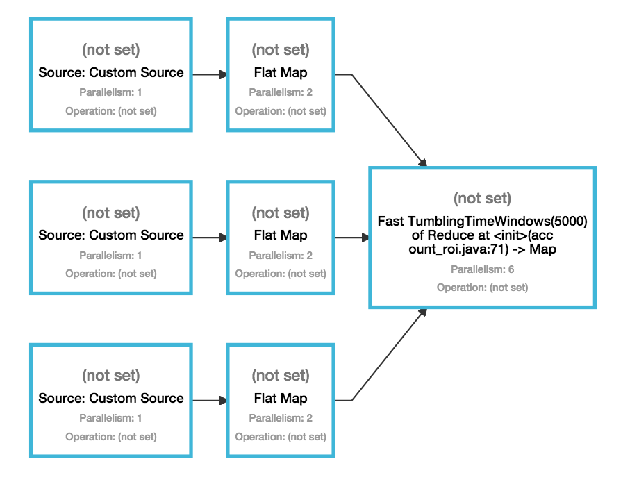 “(未设置)”部分可能是Flink的DataStream API中的一个问题,它没有设置默认的运算符名。根据DataSet API实现的作业如下所示: