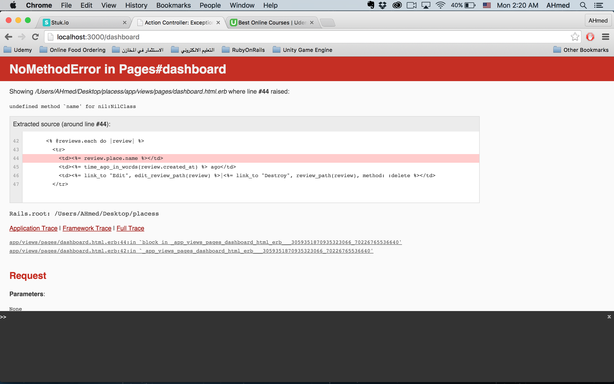 我正在为我的应用程序创建一个仪表板,但是当我想显示评论时,我会得到NoMethodError,尽管我已经在控制器中定义了变量。当我查看仪表板页面时,我会得到错误。这是我的密码