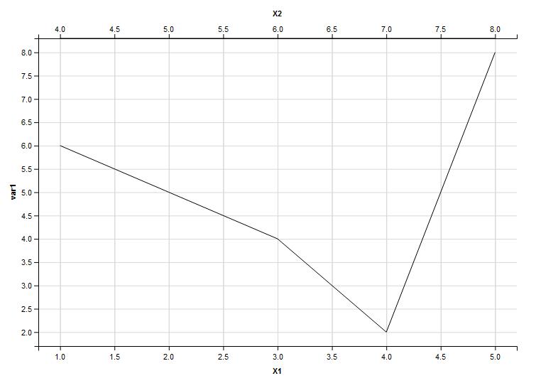 如您所见,顶部x轴反映了您的X2变量,范围在4到8之间。