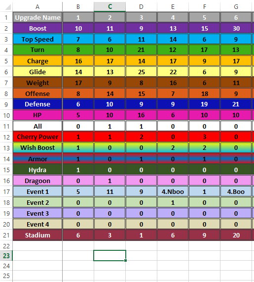 我将手动更改公式中的值,这取决于我正在寻找的体育场号(即6或3)或我要寻找的项目(即Boost或Glide)。