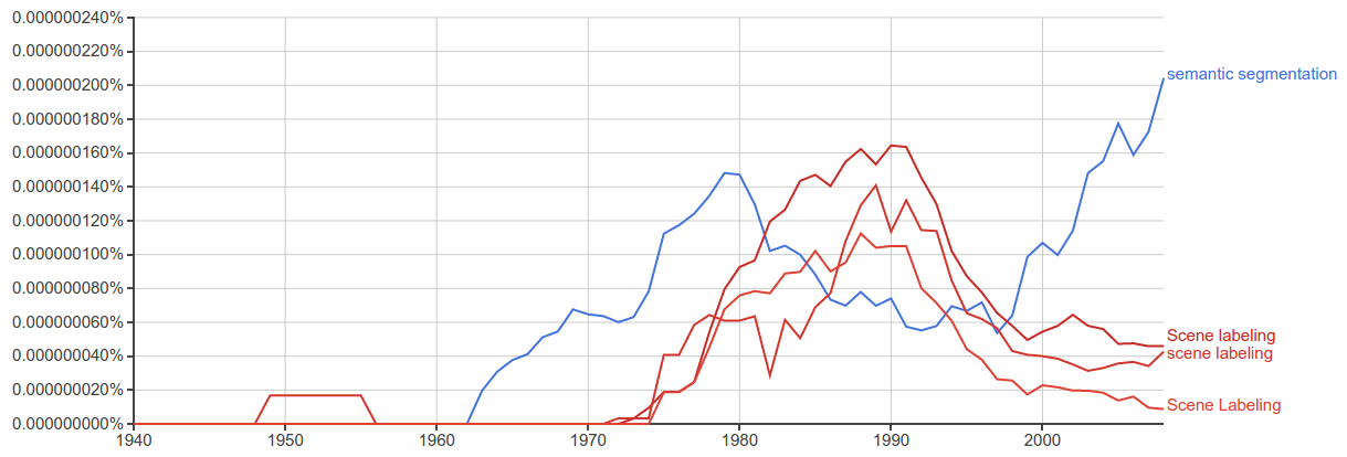所以,我想你可以说“语义分割”、“场景标记”和“像素级分类”基本上都是为了达到相同的目标:从语义上理解图像中每个像素的作用。您可以采取许多途径来达到这个目标,而这些路径会导致术语上的细微差别。