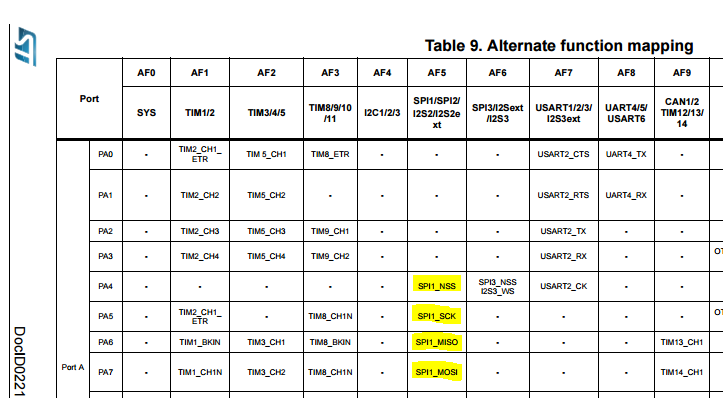 GPIO_PinAFConfig(GPIOA, GPIO_PinSource5, GPIO_AF_SPI1);