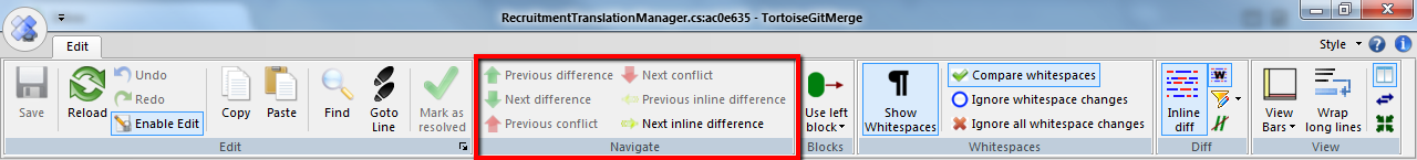 突出显示的部分与TortoiseMerge中相同