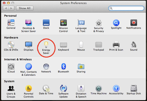 进入计算机首选项,点击节能,并确保所有滑块设置为“从不”,电池和电源适配器。这将使您的计算机保持清醒,从而使仪器自动化。