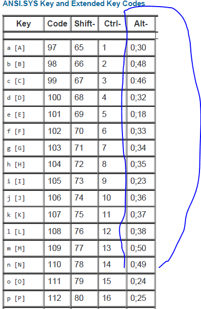 Alt-列中的数字意味着必须读取两个字符:如果第一个字符为零,则必须读取另一个字符才能获得键。