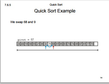 我认为如果读者首先看到幻灯片中解释的步骤会更有帮助,因为我发现还有许多其他不同的方法来解释快速排序算法。