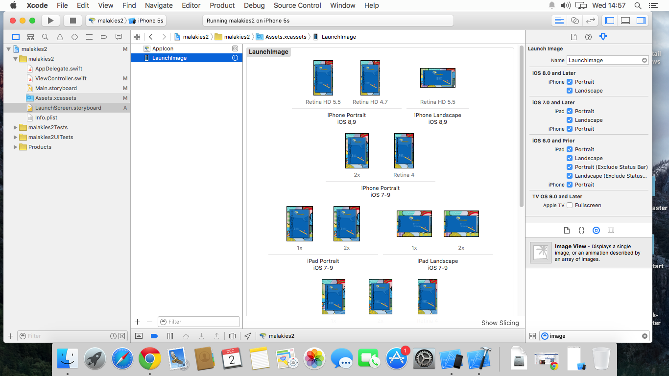 在这里,我做了它所需要的所有的图像尺寸,我用图像填充了所有的表格。我已经通过右击和选择新的iOS启动图像这一点。