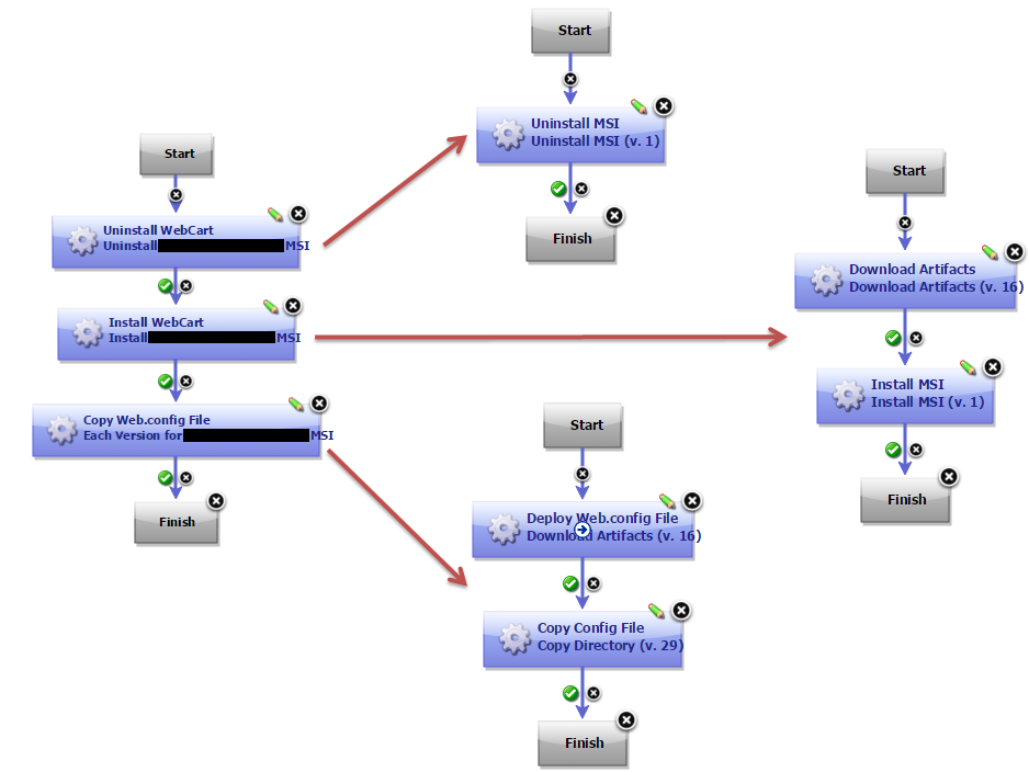 概述:部署流程功能中的三个(子)进程在隔离执行时正确执行并按预期执行;当这些进程链接在一起时,安装进程将不会执行,尽管最近已经完成卸载进程执行,但安装进程仍表示“已安装”状态。