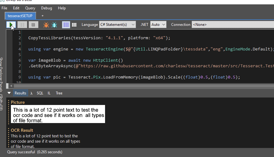 我试图在Linqpad中使用Linqpad OCR软件。我采取了以下步骤: