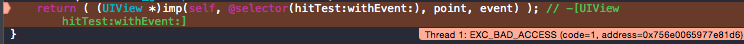 return ( (UIView *)imp(self, @selector(hitTest:withEvent:), point, event) );