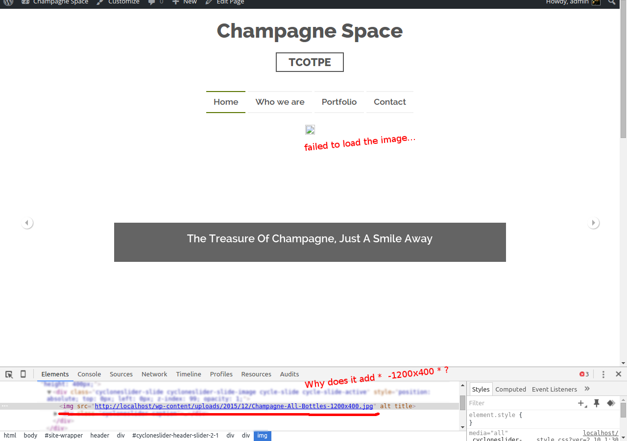 例如。我上传图片Champagne-All-Bottles.jpg。在管理面板映像中,成功地加载:/wp-content/uploads/2015/12/Champagne-All-Bottles.jpg,但是在站点页面上,它向img url:/wp-content/uploads/2015/12/Champagne-All-Bottles-1200x400.jpg添加了一个width和height