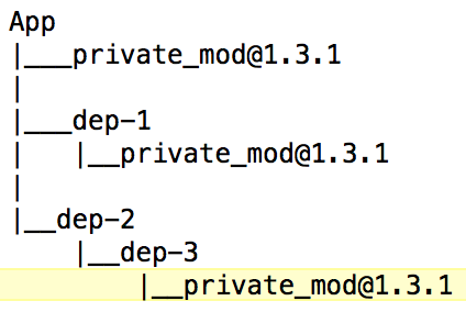 npm --depth 9999 update private_mod@versionhttps://stackoverflow.com/questions/34189304