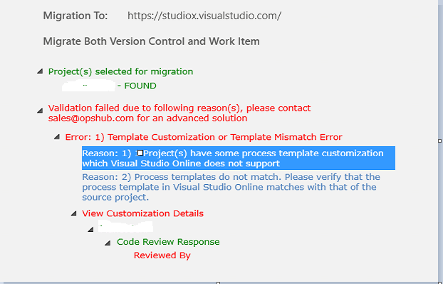 尝试通过OpsHub从TFS 2010迁移到Visual时,会出现以下错误