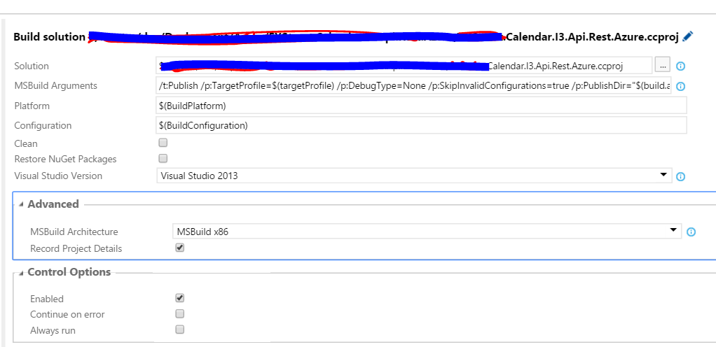 /t:Publish /p:TargetProfile=$(targetProfile) /p:DebugType=None /p:SkipInvalidConfigurations=true /p:PublishDir="$(build.artifactstagingdirectory)\\" /p:OutputPath=bin\https://stackoverflow.com/questions/34255437