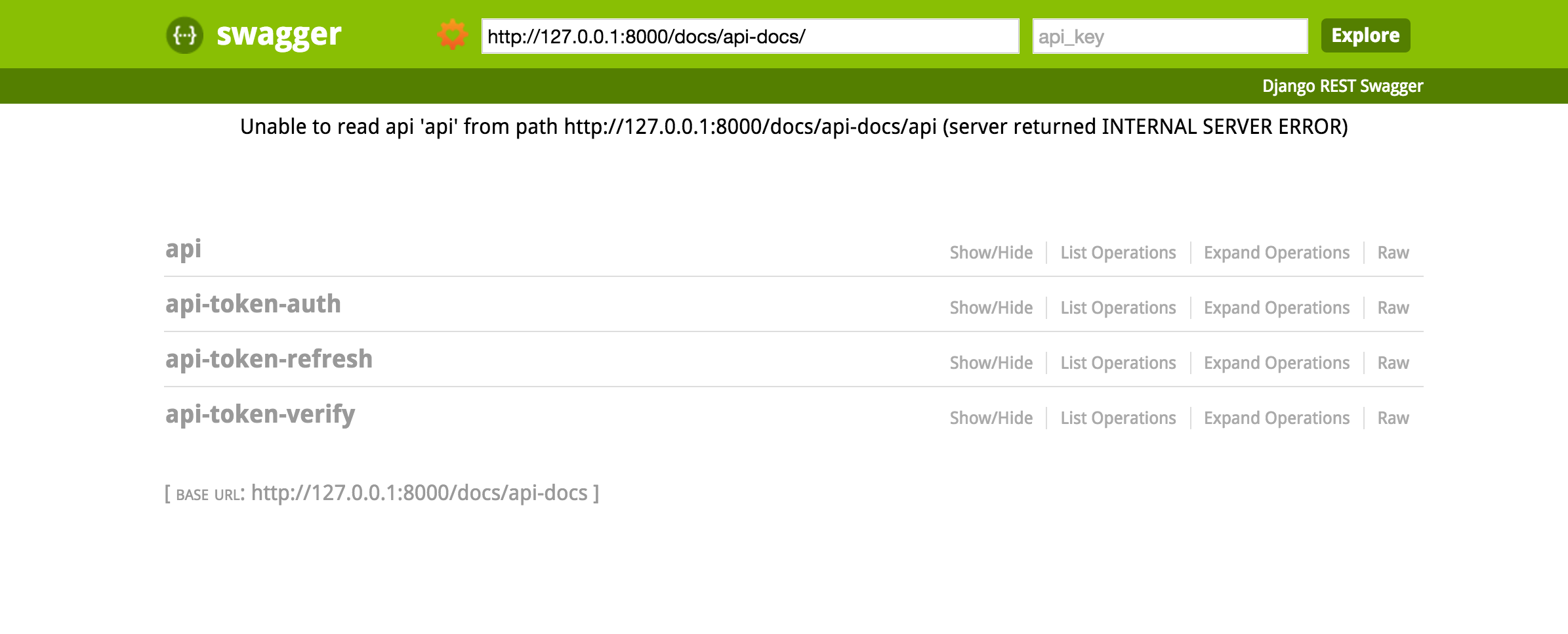 我正在创建一个API资源,我想为此使用django rest-swagger,并且我已经完成了django rest-swagger 文档中提供的所有步骤。