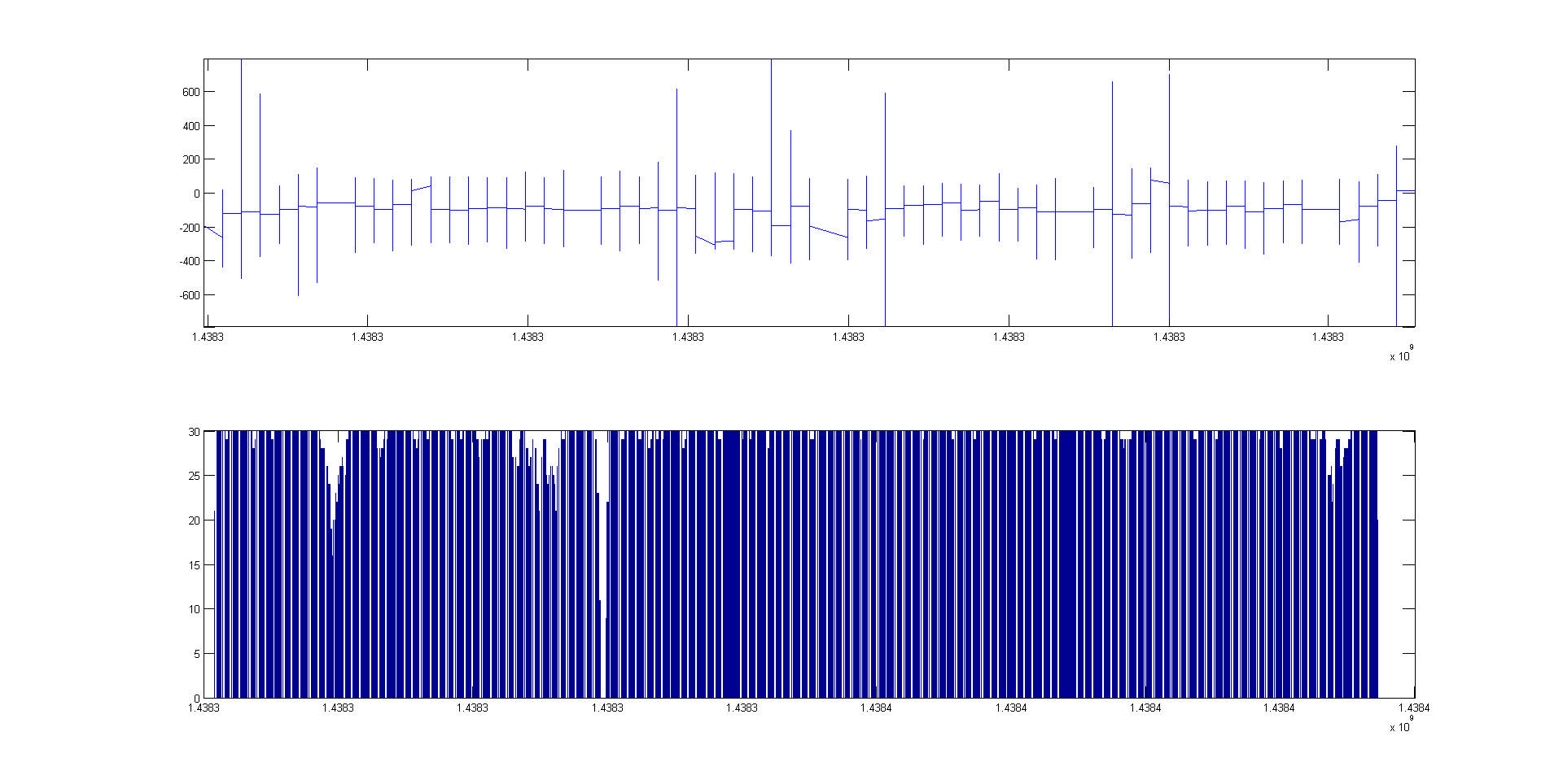 上面的子图是一个完全正常的心电信号。下面的子图是条形图。