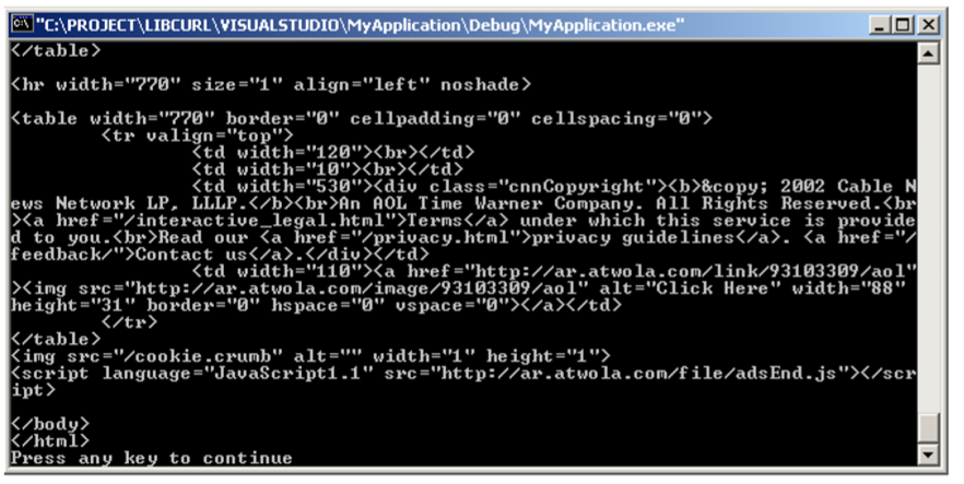 std::cout << htmlBuffer << std::endl;
