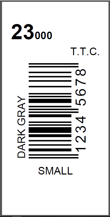 如您所见,它有不同大小和样式的文本。它还有一个旋转的条形码。