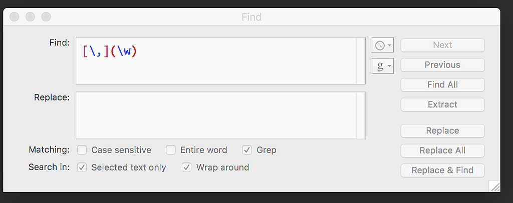 Find: (\,)(\w)