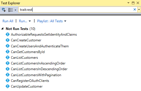 我喜欢在Visual中运行一组特定的测试,根据特性对它们进行过滤。例如: