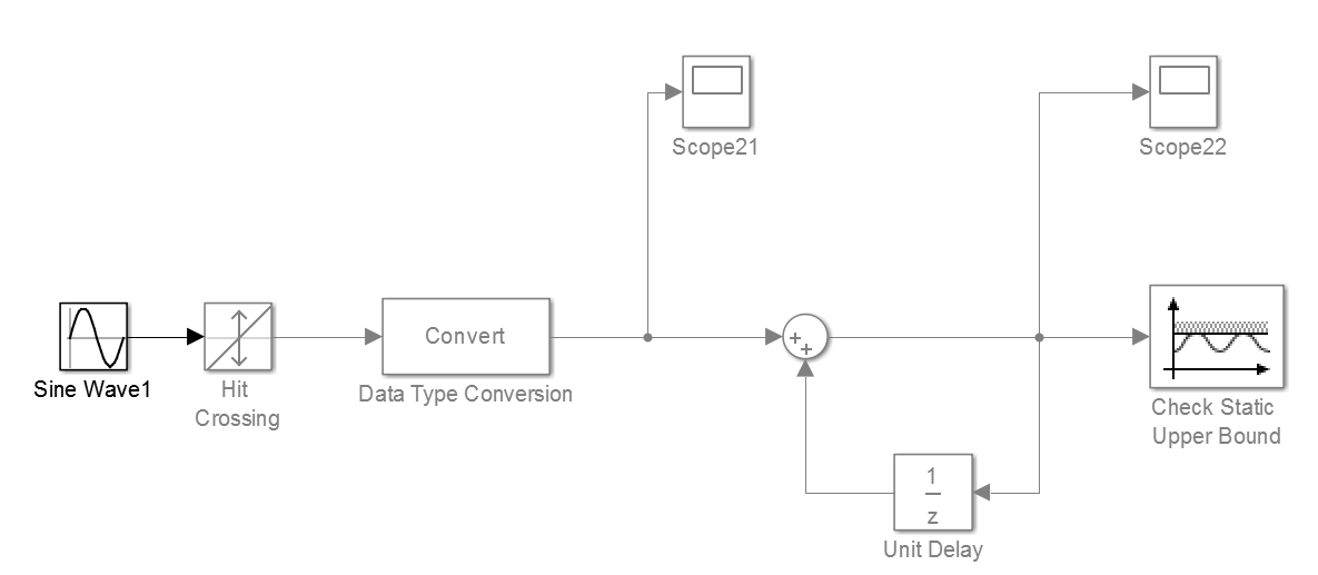 假设您有一个Simulink仿真,其中某个信号首先是正的,在给定的时间间隔内经过一段时间t之后,它就变成了负值。你的目标是找到过零点。