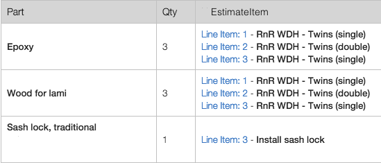 当部件连接到单个项目时,我想不出如何做到这一点,所以我尝试将它们全部放置在一个(part: Part, item: EstimateItem)元组数组中。