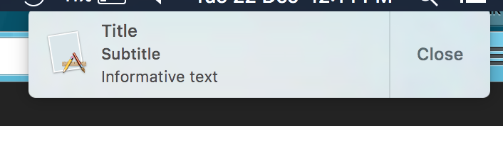 目前,当我使用Alert样式创建一个NSUserNotification时,除非手动关闭它,否则它不会隐藏。